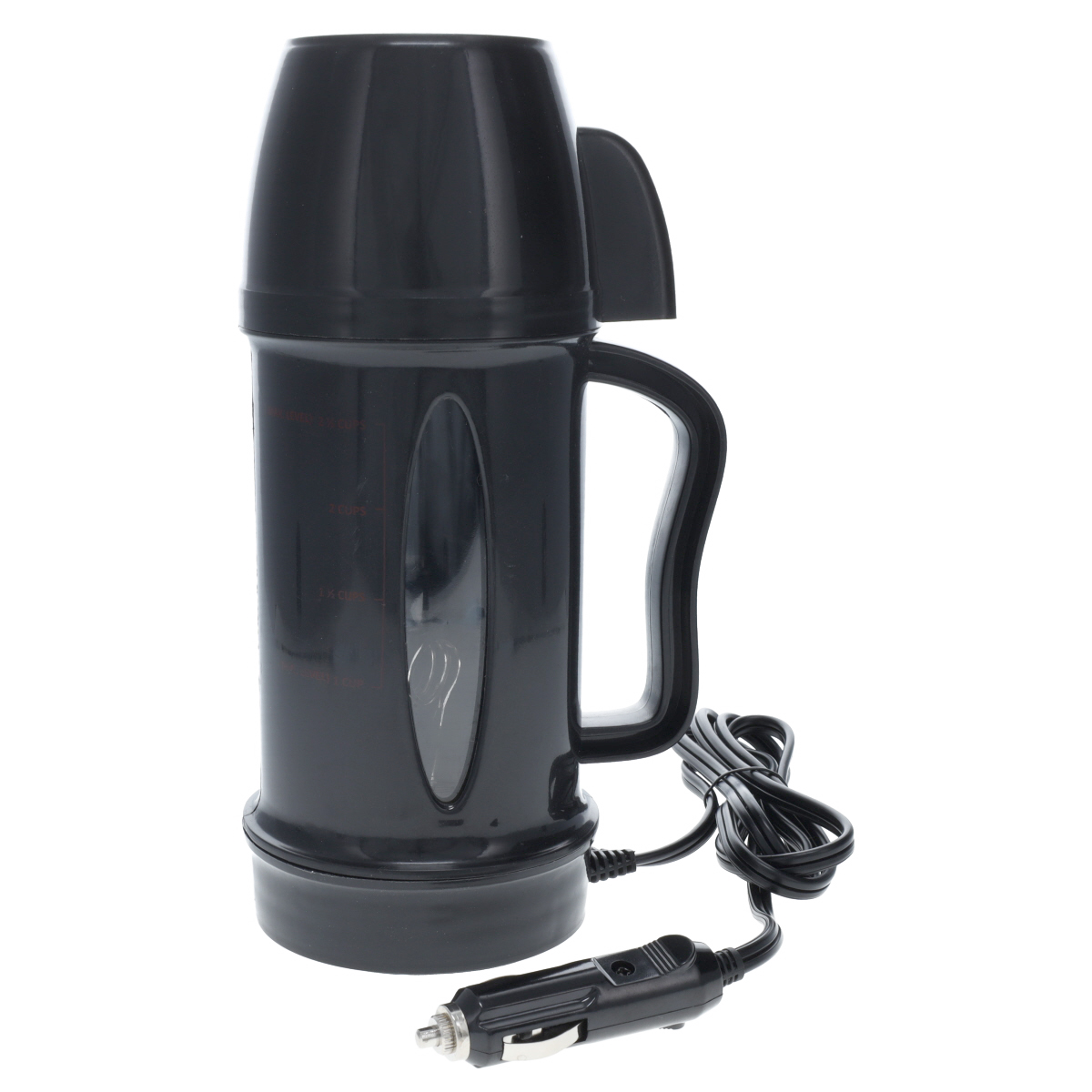 Keep your beverages hot for hours with this 12v heated travel mug. It plugs into any 12-volt port and features five temperature settings, a non-spill lid, and a non-slip bottom. Its 15-ounce capacity ensures you’ll have enough coffee or tea to last through your next leg of the trip.