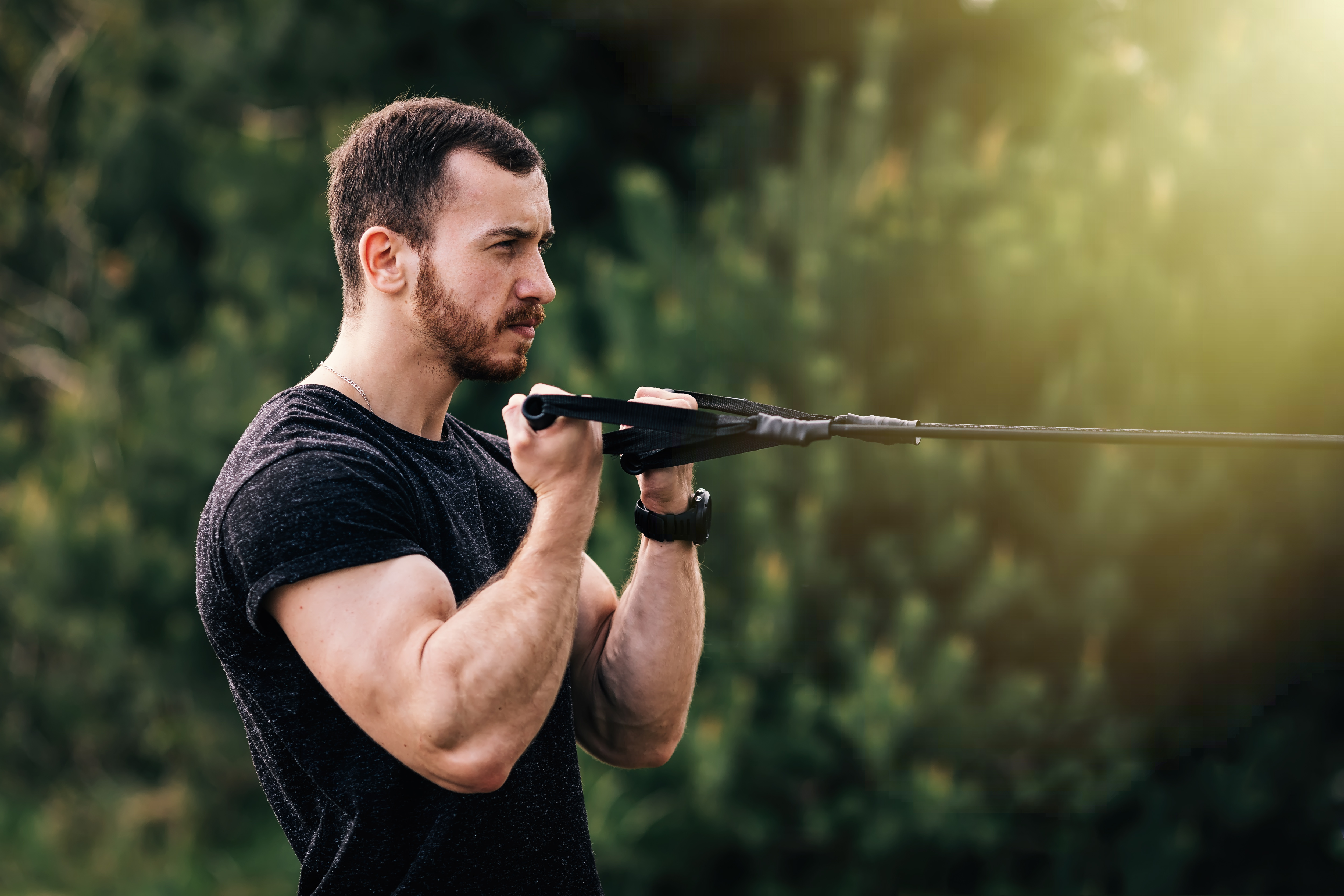 - Resistance Band Rows: Stand on the resistance band with both feet and hold the ends of the band with your palms facing down. Bend at your hips and pull the bands up towards your shoulders. Do 3 sets of 10 reps.