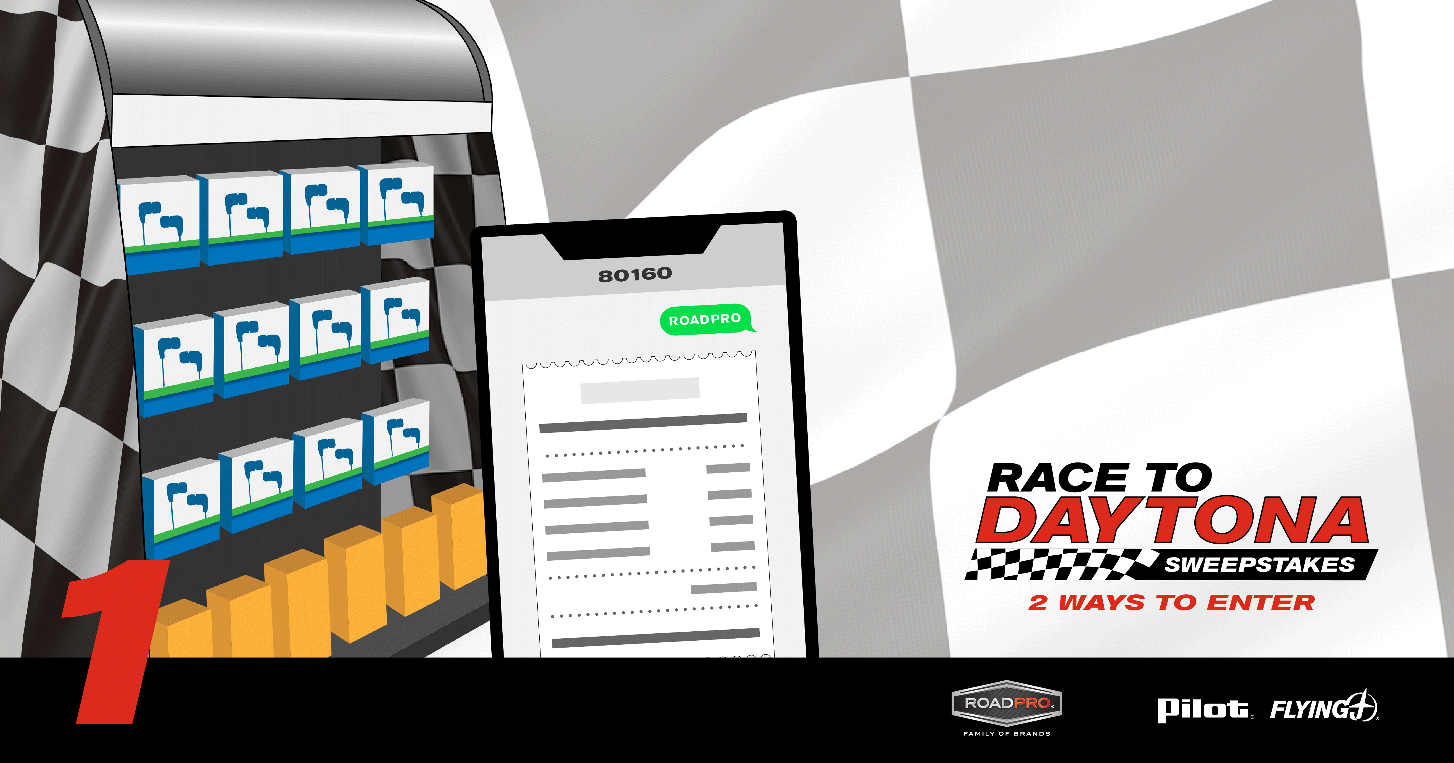 The Race To Daytona Sweepstakes, presented by RoadPro Family of Brands, launched on August 27th and runs until October 28th. One lucky winner will receive an all-expenses paid trip for two to the Daytona 500 in February of 2020. 8 weekly winners will also receive a $50 Pilot Flying J gift card just for entering.