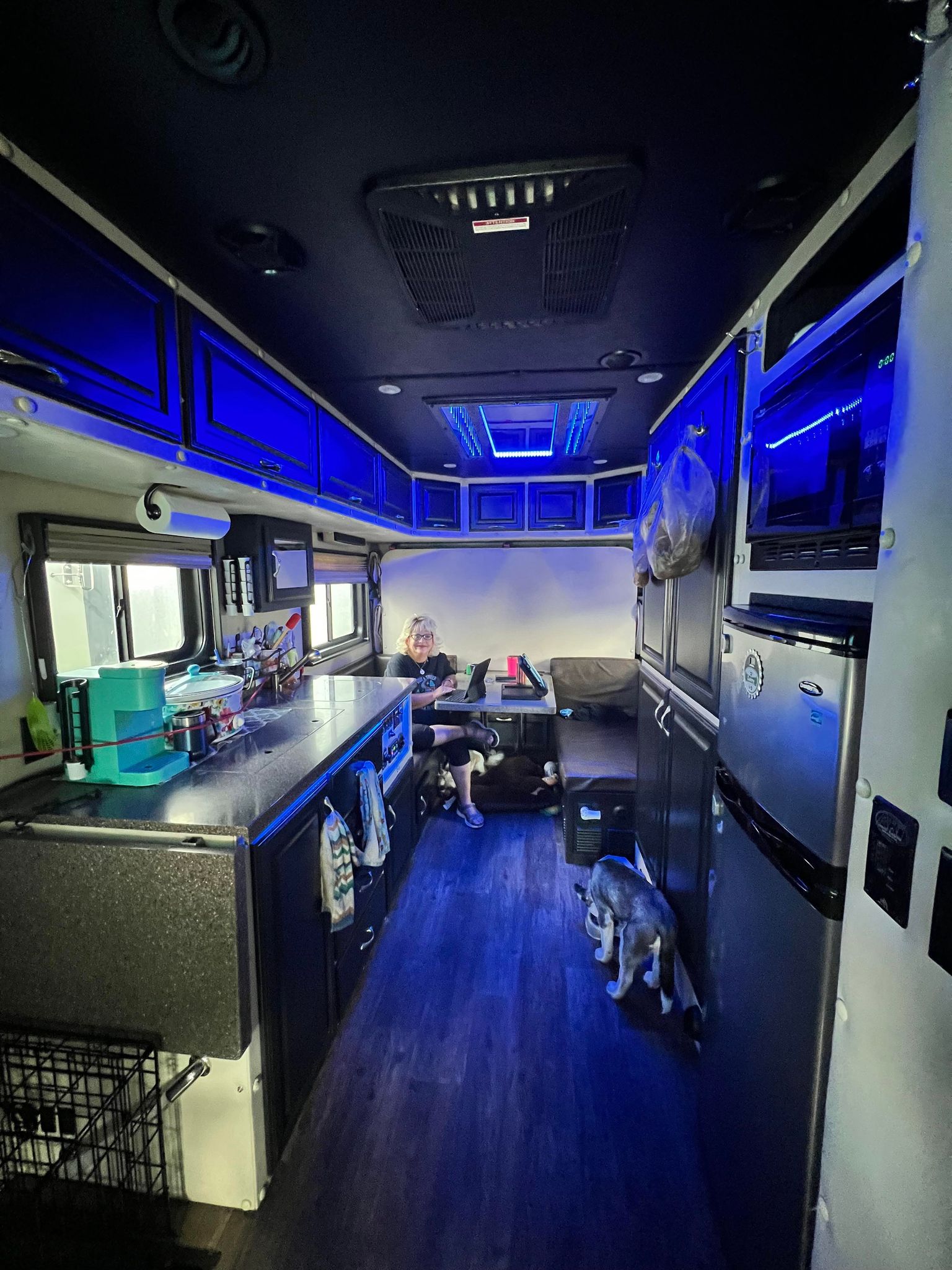 Two weeks ago, we finally moved into our new home! It is an ARI Volvo Super Sleeper, which is quite literally like an RV for truckers. Our current home (aka our truck) is a 180-inch sleeper. It features a fully equipped kitchen with two electric burners, sink, microwave, conventional oven, bathroom with a shower, dining area, and a queen-size bed.